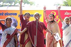 Sudha Sundararaman gave the concluding speech pointing out the need to safeguard our rights as enshrined in the Constitution, which had been won through struggle. She drew on the traditions of multi-dimensional struggles as exemplified by leaders like Ahilya Ranganekar. The direction of development – with the State backing out of its responsibilities on education and health, and coming forward to sell vital natural resources like water – has to be fought, she said.